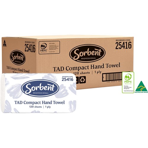 Sorbent Professional TAD Compact Hand Towel 1 Ply 120 Sheets Carton Of 20