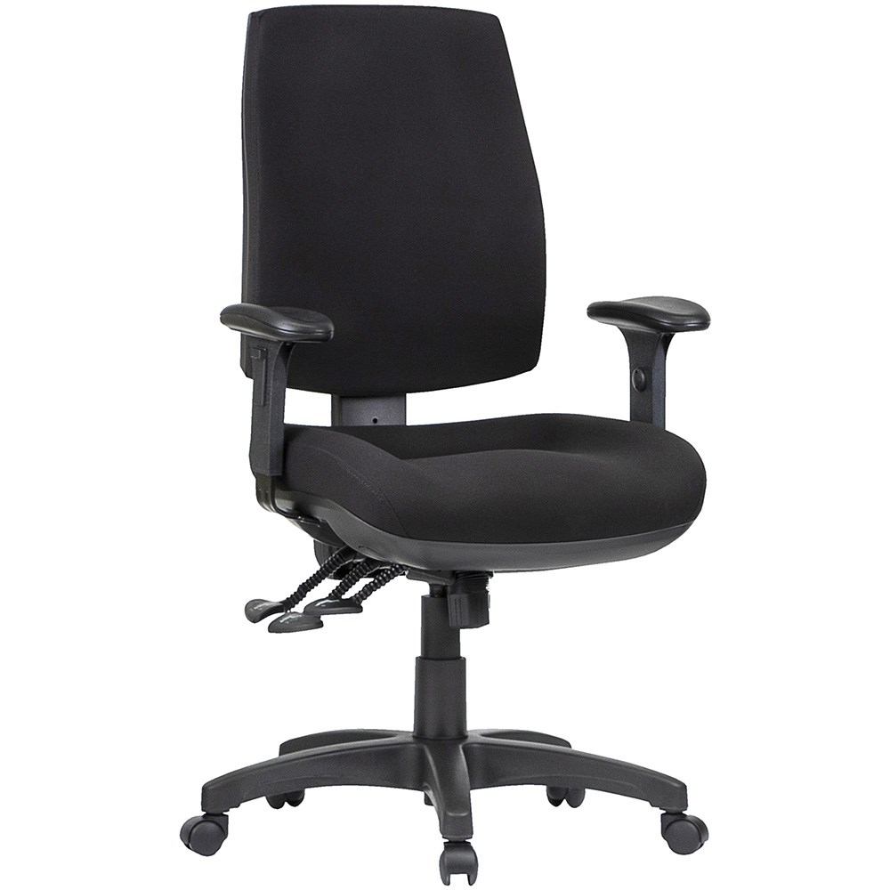 Spot High Back Task Chair 3 Lever With Arms Black Fabric