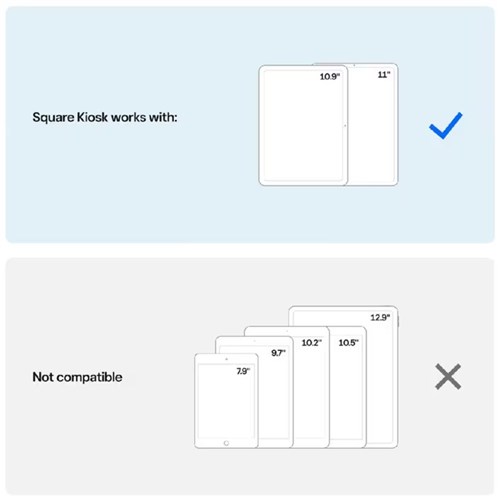 Square Kiosk can run off your iPad battery. Compatible with: iPad (10th generation), iPad Air (4th and 5th generation), iPad Pro 11 inch (1st, 2nd, 3rd, and 4th generation) and iPad Air 11 inch M2. iPad not included.