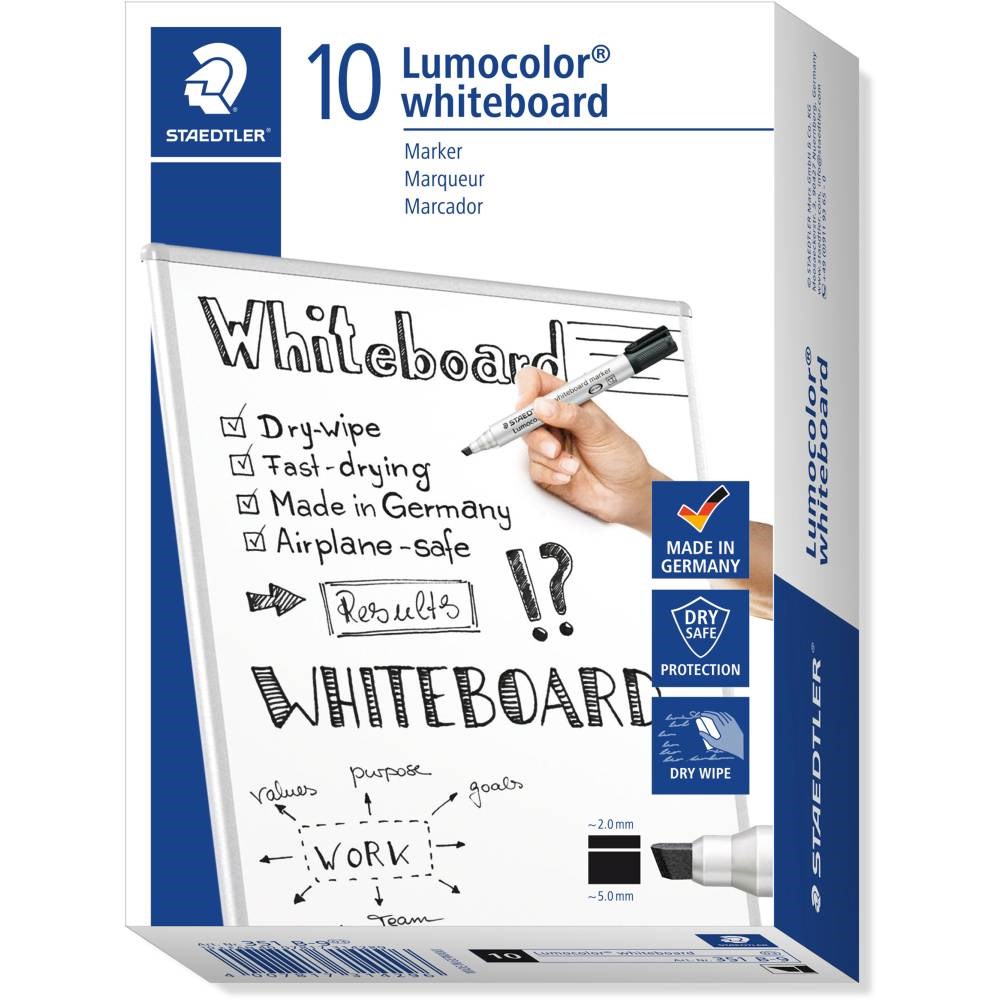 Staedtler 351 Lumocolor Whiteboard Marker Bullet 2mm Assorted Colours Box Of 10