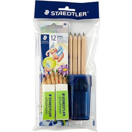 Staedtler Jumbo School Kit (With Jumbo Natural Pencils And Jumbo Coloured Pencils)