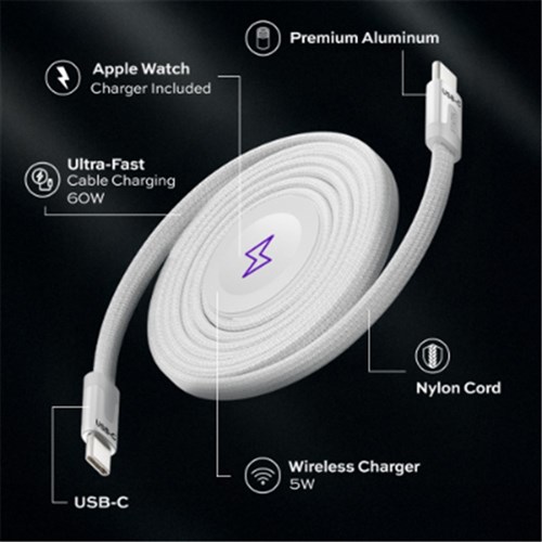 Charge your Apple watch plus USB-C phone with 1 compact cable.