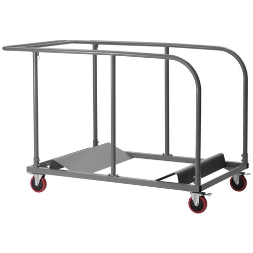 Sturdy steel frame trolley built to last for easy storage of folding tables with secure movement between areas.