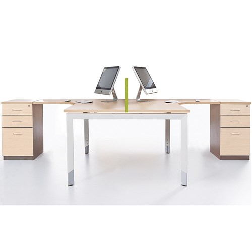 2 Person Corner Workstation Snow Maple top and White frame. Includes 2 x 2 drawer 1 file fixed pedestals.