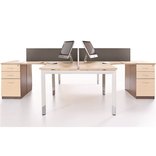 4 Person Corner Workstation Snow Maple top and White frame. Includes 4 x 2 drawer 1 file fixed pedestals.