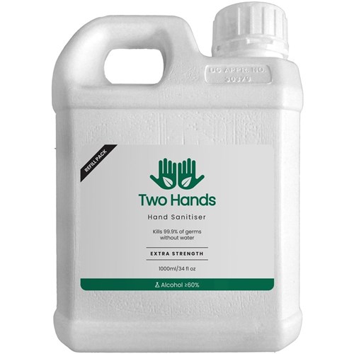 Two Hands Hand Sanitiser 1 Litre Gel Refill 60% Alcohol