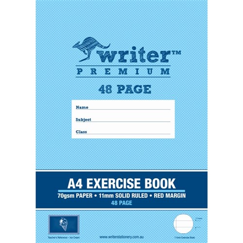 Writer Premium Exercise Books feature heavy duty covers, high quality white 70gsm paper.